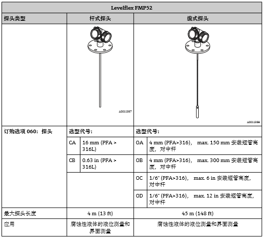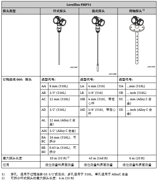 E+H導波雷達物位計探頭選型: