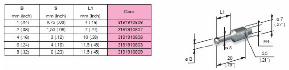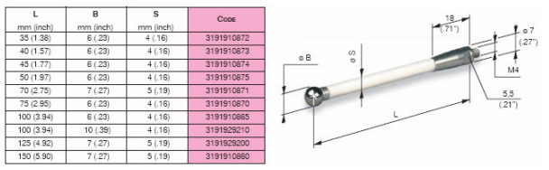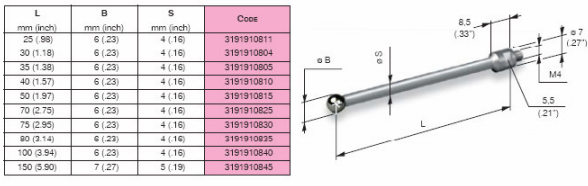 MARPOSS側桿根據客戶需求可以提供陶瓷和鋼兩種材質的測桿。在選擇測桿的時候,應盡可能使用最短的測桿當必須使用長的測桿時,最好選擇陶瓷材料的測桿,盡可能避免使用延長測桿,特殊測桿可以特殊訂購。